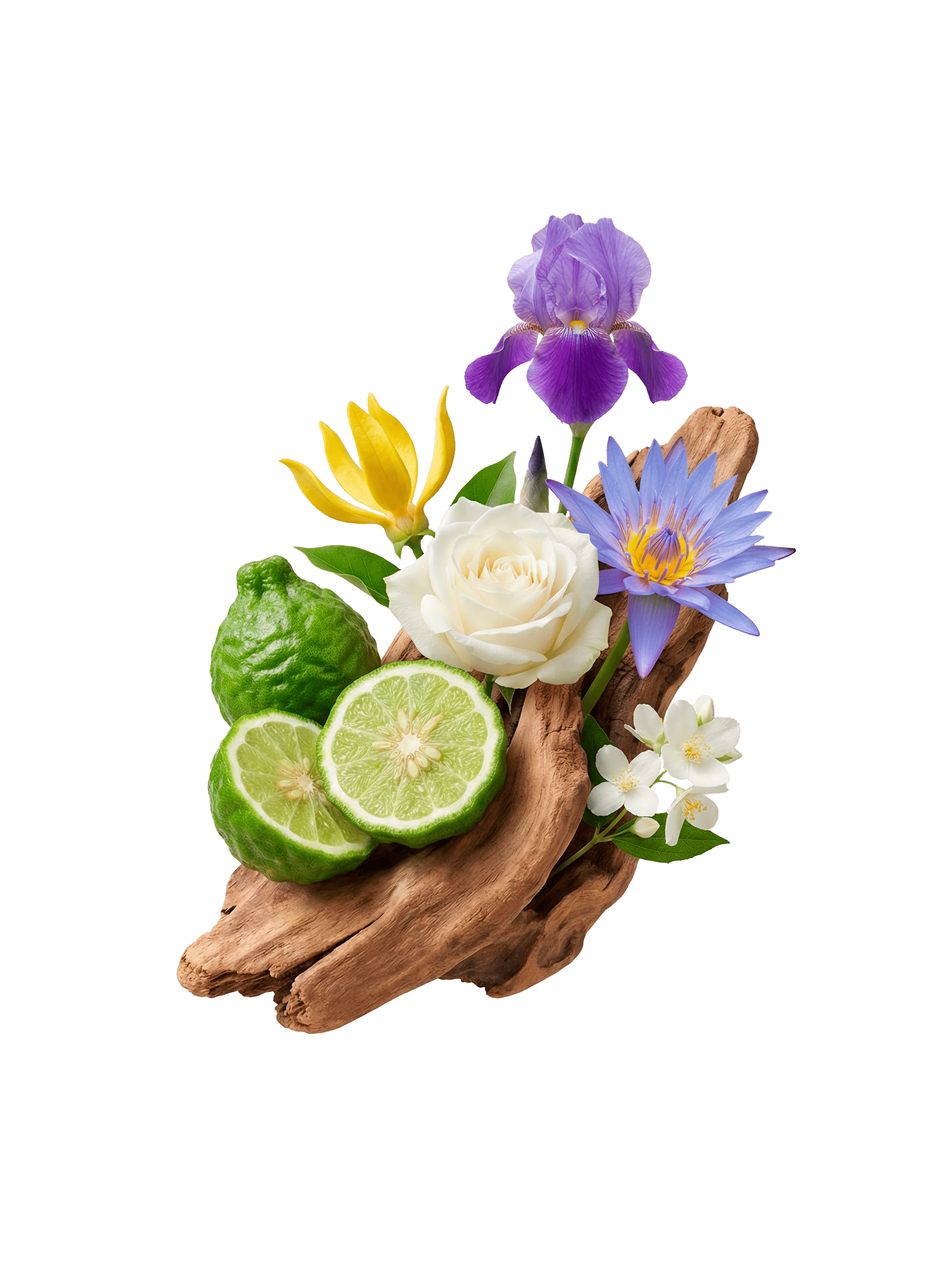 Аромат встречает вас фруктовыми аккордами, нежным бергамотом, зелёными нотами и утончённым иланг-илангом, напоминая дыхание утреннего оазиса. Сердце композиции раскрывается звучанием тёплых специй в сочетании с изысканным голубым лотосом и папирусом, обрамляя свою историю россыпью цветочных аккордов