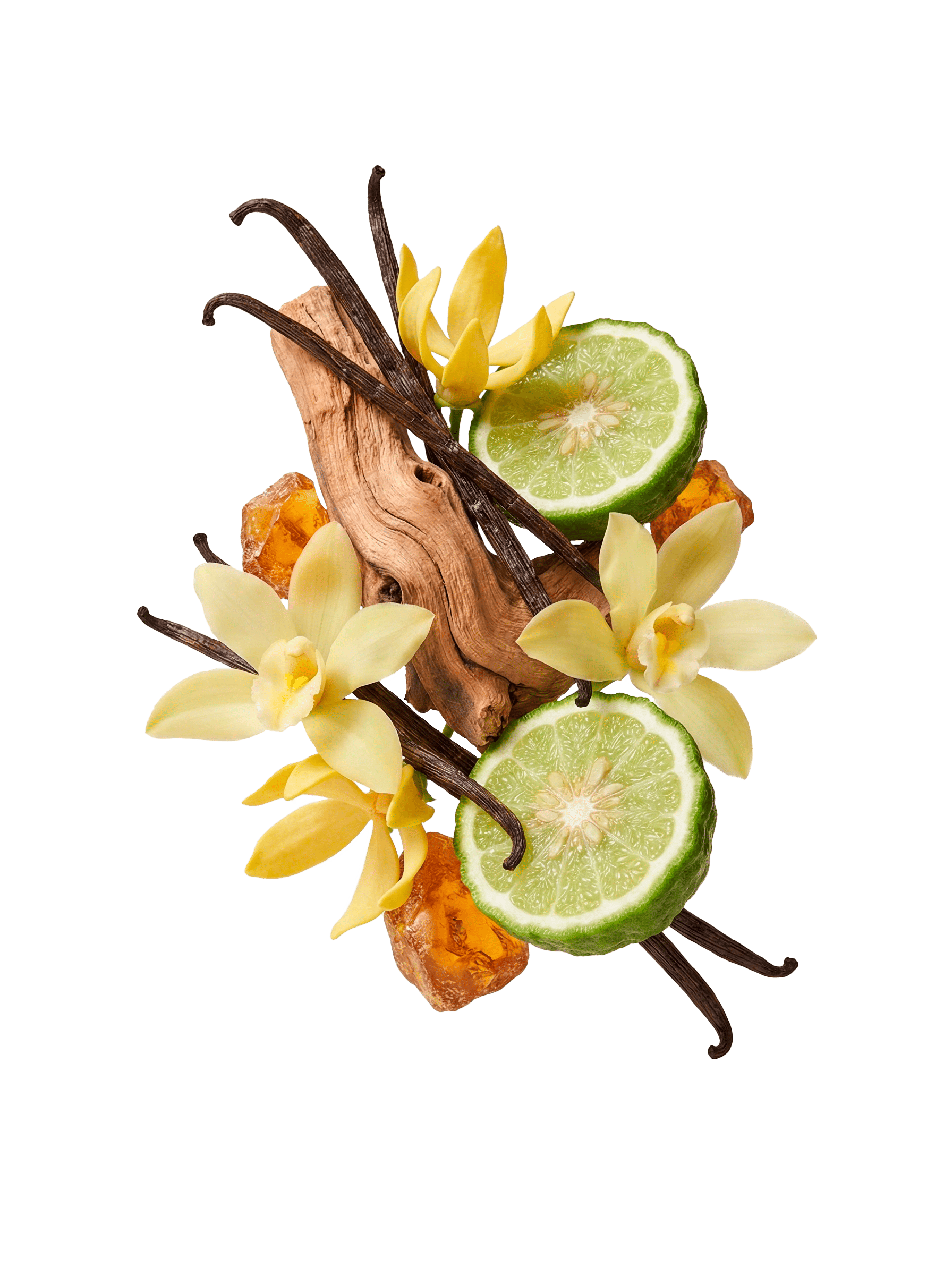 Сладкая ваниль раскрывается мягкой, бархатной теплотой. Янтарные отблески и древесные акценты переплетаются с пряной свежестью, создавая ощущение уюта, гармонии и тропической роскоши.